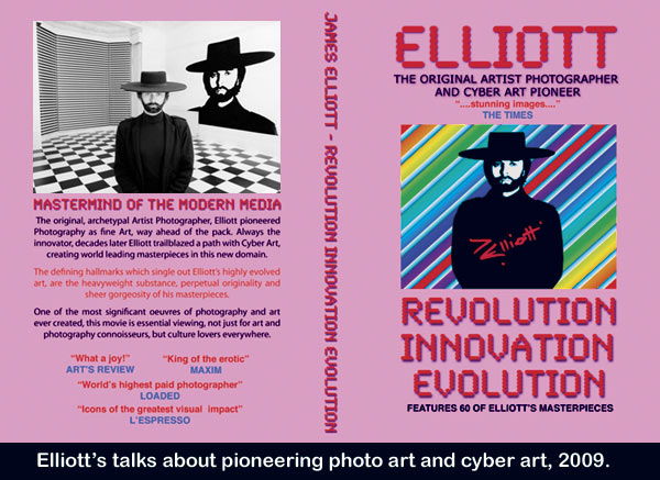 Elliott creates a new movie, talking about his pioneering Photo Art and Cyber Art. It features many works from both media. The artist also states his views on Art and his attitudes towards it. Shot at Piccadilly Circus, Abbey Road and Times Square, New York, it is full of penetrating insights and philosophical distinctions.
