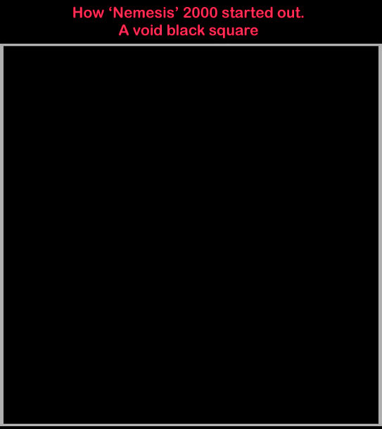 One man holds a paint brush the other a camera. Which is the artist? Answer is : Either, neither or both. Few people have any understanding of the simple fact that whether or not something is art, has little to do with what art is actually made of. Very few painters or photographers are artists. Simple fact. That they are holding a camera or brush is utterly meaningless. Using the epithet 'Artist' or 'Photographer' is equally meaningless. So is hanging something in a gallery. A gallery may or may not contain art. So when computer art and digital imaging were being dismissed as things unworthy of serious contemplation, it was a case of déja vu. They weren't so much wrong as just lacking in imagination, regarding what could be developed. They were wrong about music too. ALL recorded music today is created with computers. Electronic instruments prevail everywhere. Samplers, synthesisers, drum machines, MIDIs and so on. Eventually synthesisers came to sample actual sounds rather than using an oscillator to mimic them, but ironically without the early attempts to mimic existing instruments, all the new sounds would not have been created. And clearly, electronic sound is very much the defining hallmark of modern music. Even those musicians who erroneously call themselves 'purist' and use traditional instruments, all use computers and samplers to record. Even where music sounds free of electronics, it invariably isn't. Even the greatest guitarists, for example, take a short piece of music and perfect it digitally and move it around to another place in the recording, and so on. Although few realise that, I know. Why there is resistance to these facilities, I have no idea. This is also an error. I guess even today, people still want artists to nail themselves to their crosses. This rather silly view still exists, that if something was that easily done, it can't be art. Truth is, they want it to be difficult for you. Hell, they don't want to pay all that money for something you did in half an hour. I'm afraid that people who think effort equals result, still have a few things to learn, philosophically. The reason people fail to grasp brilliant new concepts, is that a they lose their child-like sense of adventure. Children run to catch snow flakes. Old people just moan about the weather. Spirits should be ageless. Forever young. During the 90s, probably about 1996, I had a series of epiphanies similar to the ones I had with photography, back in the early Seventies. I realised that you could work with the same image and creatively take it down six different channels, metaphorically speaking, and end up with six images so different from each other that you do not recognise the source. This was a revelation. One of those things you just cannot comprehend until you see it done. This almost seemed like creating something out of nothing. Which is what I did next. The next progression. To create my anthropological masterpiece 'Nemesis' of 2000, I started with nothing, just a blank black square. Here is how it ended up.