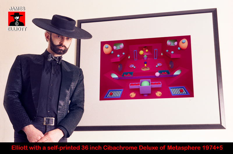 Although the colour photographic printing methods I have used over the last 50 years have been challenging and fraught with difficulty, I have no regrets, as historically it has enabled me to print to a standard which would otherwise have been impossible. It helped me create an art of much enhanced power. From the very earliest days people always enquired "Who does your printing?" and many extreme comments were made such as, "The quality just leaps off the walls" or as one put it "Absolutely attacks the senses!". Praise enough to make it all worthwhile and in one's formative years, encouragement matters. As I have commented many times, I no longer care about opinions as I now philosophically understand what they are, and once you do, they become insignificant. Young students find it difficult to understand this strength and sometimes ask if I am feigning indifference. No I am not, I genuinely don't care. I'm the expert around here and I know what I am doing. Only someone unsure of themselves asks for approval. If after 50 years I don't know what I am doing, may the Gods help me! If I had listened to everyone else I would never have colour printed at all, as in 50 years and a lot of photographers later, I never met or heard of anyone who did their own colour darkroom prints. This amazed me. Anyone who has ever heard different renditions of a piece of classical music by different orchestras, will tell you how different they are. Sometimes it is hard to believe it is the same piece of music. Which is correct? Who knows? But you can be sure of one thing. My prints are exactly how they should be. The best they can be both technically and creatively. Technology will change everything now of course, as printing via supreme quality ink jet printers is much simplified and the results magnificent in the right hands. You still need to train your eye to finely tune colour, which takes years, but most of the technical issues outlined here are eliminated. You also need archival expertise and so on, which frankly few people have. I have heard some big name artists say very stupid things in this regard. Computers have their own lexicon of problems, I know, but I nevertheless welcome these fabulous advances in technology, as it means less "fencing with science" and more creativity. Any masterpiece is always a lesser part technique and a greater part creativity. What is astonishing in these times, is that creativity at a certain level is common, but technical mastery, without which creativity is drastically limited, is almost never there. The caveat is that although creativity is the greater part of art, technical mastery exponentially expands creativity and the lack of said technical mastery limits it. Technical inadequacy, which is extremely common, is like driving with the hand brake on. Technical virtuosity is like a creative turbo kicking in. One is a boost, the other is an inertia drag. Digital imaging has revolutionised image creation forever, as has technology in music. People sometimes make fatuous remarks like 'Oh you could do that with a computer nowadays'. Ignorance abounds. Well if you could dream up the original idea in the first place, that would be a start, but that is something uniquely Elliottonian. Sorry, I'm taken. You cannot be me. Anyway, having pioneered cyber art and being an absolute master of it, let me assure you that even if the idea was yours, you cannot create a Metasphere with computers. You could get something close and it would still take a month of Sundays to create, but in the end it would still not quite have the authentic verisimilitude that Metasphere displays. I could do things just as good as that with computers, I have, but not the same. Computers and digital music never made a musician out of anyone and mastering photographic technique won't make an artist out of you, but if you are one, then technology has just thrown you an absolute miracle. Written by James Elliott JAMES ELLIOTT .com © JAMES ELLIOTT 2019 4280 words with 10 illustrations |
