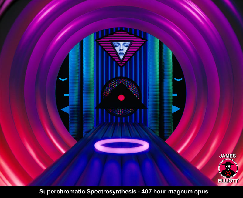 15 years of living and breathing the pioneering of photography as fine art is a long time and although my photography would continue, I felt that I had accomplished what I had set out to do in photography. Indeed, I had far exceeded my expectations. I had consistently created things well beyond my self perceived capabilities. In the late Eighties, digital imaging was in some ways, rather like photography a couple of decades earlier, reaching acceptable levels of quality, for artistic consideration by those with any kind of seriousness of intent. So I instinctively knew that the opportunities for the future exploration of the visual domain would be found, in the then terra incognita of computers. It was there that the new visual forms would be found. I would not abandon photography for cyber art, but rather, blend the two and progress them in parallel. I would also continue pure photography and pure cyber art. Photography without cyber art and cyber art without photography. And every possible cocktail in between. This, I felt would be the territory where the new visual forms of the future would be discovered. Considering what I would go on to create, I think I extrapolated with considerable accuracy. Despite a world view which was ante, my early belief in digital was very much vindicated. As the BJP noted in 1995 "Elliott speaks intelligently about his life and work and presents the best case BJP has yet heard, as to why digital cannot be ignored." I can still remember exactly where I was sat in Greencroft Gardens, 25 years after I took up photography seriously, when I realised for the first time that I had accomplished my artistic ambitions. This was something of a surprise, as a part of me never really thought I would, considering how high I set the bar. There was now enough work of stature in the canon that you could hold it up against art in any field and it would at the very least hold its own. It was a quarter of a century of 70 hour weeks later, but that I had done what I set out to do, was beyond any shadow of a doubt. The work was just there, staring back at me. The mistake I had made 25 years earlier was in not realising that Dali had fifty years on me, in terms of experience and I was just beginning. How on Earth I didn't perceive that patently obvious fact, completely escapes me. It's funny in some ways, because after years and years of not really believing I would ever get there and being totally aware that after a quarter of a century of being honest with yourself, you cannot suddenly lapse and lie to yourself, I was genuinely surprised to have reached that level. I had also pioneered the two most powerful new visual art forms in history, photography and cyber art. And way ahead of the pack. And I also had a mastery of colour and composition, the Dalis and Picassos simply did not have. So in more ways than one I had exceeded my aspirations, even more so my expectations. The work I created after the mid Nineties, year on year simply confirmed and consolidated my view. It reached ever greater heights of creativity which I could not even have imagined. Perhaps the most important thing I did was to raise the level of creativity in Photography and Cyber Art to the point where only a fool would doubt its authenticity as fine art. And it has to be said, in 50 years, not a single person has ever refuted my work as art. On the contrary, comments like the following are common: 'Your work is the bridge between photography and fine art' 'You take photography some place else'' 'You are the voice of a new generation' 'There's nothing this interesting going on in either art or photography.' and 'I went in with a question.... is it art? I came out with a question..... what else could it be...?' So even the skeptics were changing their minds. It should be noted that Photography as an artistic medium took an awfully long time to evolve, even from a technical standpoint. For example, it was not until the mid Sixties that colour rendition and longevity reached a high enough standard for any serious artist to consider. The arrival of Cibachrome, initially named Cilchrome and later Ilfochrome, was the first generally available print material, with good longevity. The 3 names differ but they were all based on the same principle. The silver dye bleach process, which was also the first to reasonably render colour accurately. It was a material I would use extensively for decades up until digital printers became superior. I printed all my own colour right from the beginning and have done so for more than 50 years. You have to if you want the ultimate in quality. Commercial printers are exactly that, commercial. And in a commercial lab prints are done to a certain time frame and to a certain standard. Compromises are made for economic reasons. I know this from experience with even the most expensive labs. Their raison d'etre is profit, not art. As an artist you can lavish an unlimited amount of time, effort and money to your art and your printing. This is not possible in a commercial environment. Cibachrome technology evolved over many years, from Cilchrome being a material exposed via separate red, green and blue light exposures, to the more evolved version of Cibachrome which used white light and simplified one shot processing. A real breakthrough. So by 1973 was it was highly usable and of very high quality. This timing coincided rather nicely with my development as a photographer. I have often said that had I been born a decade earlier, I would not have pioneered photography as fine art. The technology would not have been good enough. It was indeed fortuitous that I was born synchronised with the dawning of a new medium. Both technically and creatively. One tends to go with the other. If we take Niepce as the inventor of photography, well it took the best part of a century and a half to evolve photography into a full colour medium, suitable for consideration by serious artists. No artist wants thei