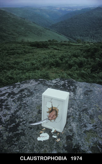 So people would look at "Claustrophobia", and it would throw them because it was clearly an impossibility! If ever an image lied and told the truth in the same breath, it was this one! And it made a mockery of people's misguided belief. "Claustrophobia", by the way, is not about claustrophobia. It's about me breaking out of the strictures placed upon me by society and my immediate environment. And of course, in parallel, me doing the same with the medium of Photography. Smashing through the barriers, You must remember that in those days Photography was quite a "rigid" medium. Not at all fluid, like it is today, with the advent of digital imaging. It was back then, extremely difficult to manipulate and I was working very hard to change all that. I knew this was essential if Photography was to become a Fine Art form. I thought it would be a great idea to use my newly developed technology and go with Margaret to Berry Pomeroy Castle, perhaps creating a vision of a head floating through the ruins. The opposite of the usual headless ghost, I thought. So in 1974 I returned to the castle with my model Margaret and I am setting up my huge tripod - essential for my light masker in view of the precision required - when suddenly a man appears. This was the first person I ever saw there and he introduced himself as the gamekeeper. He asked me what I was doing, so I told him. "You know the legend of course...." the gamekeeper said, presumptuously. I looked at my girlfriend and she looked at me, as couples often do when they check each other for affirmation. Neither of us knew.... "Uh... no, actually..... what legend?" The gamekeeper replied, "Margaret Pomeroy........" and as he started to talk I was thinking "Great, he's not going to throw us out", but before I had time to dwell upon this, my girlfriend interrupted. "Margaret?" said she, "My name is Margaret." "Hmmm..." said the gamekeeper, "Margaret was locked in the dungeon by her jealous sister until she starved to death". "My God!" says I, aghast. "And she is seen to walk the rampart without her head." Fascinating I thought, as here I am right now, creating the complimentary reverse - a head floating through the castle grounds without a body and I knew nothing about this legend. Friendly fellow the gamekeeper was, and he bid us "Good-day" and was gone in a flash. I decided in that moment to dedicate the picture to the girl who had suffered such an awful fate. And so it was, that this image became,"The Picture for Margaret Pomeroy", of 1974.