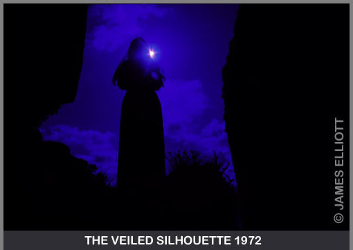 Later I thought it would be great to do a proper, intentional elegy, so I returned to the castle alone with my camera. I often do this. I go to the scene, a day or so before the shoot, to check environmental issues. This takes some of the guesswork out of shooting on location. Control is essential to great art. There was a shot I wanted to do, but I couldn't back up far enough, as a wall blocked my way. "Damn! I need a wider, wide angle" I thought. In 1974, extreme wide angles of any quality were very, very expensive and I was penniless. They cost, then, what would today be thousands of euros or dollars. "One day", I thought. The following year I bought my first 20mm Nikkor lens, which had a sweeping 94 degree angle of view. Almost double that of a normal lens. My dealer gave me 30% off and took five monthly, post dated cheques. I'd stare into the lens for hours looking at all the different colour coatings, on the various elements. Lenses were like jewels to me then. In 1975, lenses were state of the art engineering - objects of great beauty - precisely machined and all assembled, meticulously, with tiny screws. "Like watches" a friend remarked, and so they were. I did not go back to the castle at once, as by 1975 my work was taking a very different direction. I was in creative overdrive and there were huge shifts in my thinking. It was the year of 'Metasphere' and other hugely creative pieces and my thinking was shifting away from the Gothic. But one or two of the old Gothic ideas just wouldn't go away. One of these was my intended deliberate elegy for Margaret Pomeroy. The idea which would later become 'White Lady In Ruins'. It was very likely the pressure of knowing I would shortly leave Devon for good and go to live in London, that urged me to return to Berry Pomeroy Castle early in 1977. I had recently bought my girlfriend two beautiful cloaks in a fashionable shop in neighbouring Torquay. I would buy her things to pay her for being my model, which was not always an easy task. If I could also photograph the things I bought her, I liked it even more as I got a double bonus. Given the dire state of my finances in those days, this was not only a highly desirable proposition, it was my only option. There was a white cloak and a black cloak. I thought the white one would photograph better, so having dyed some shoes white to match the cloak, one fine day we set off for the castle. The wide angle worked... just! Although I was right up against the wall and had to perform acrobatics, every time I came out from behind the tripod! Like a limbo dancer on steroids. The first attempt to create the image was a disaster. I shot nothing. The lighting was wrong and when it was right the exposure time necessary would have caused blur in the cloak which just would not stop moving! And with a barely perceptible breeze too! I thought nothing of this until much later, I read that many had experienced unusual winds in that area. But I don't believe in ghosts, so I just put that down to the weather and a ruins full of empty doorways and windows. It did on this occasion though, make it impossible to get beautifully arranged folds in the cloak. Essential to imbue the image with the stillness I desired. So I wrapped the shoot and said to Margaret, "Another day!" Driving home though, I kept thinking about what a powerful image it was, so I decided to return soon. In the ensuing weeks I was out photographing elsewhere, and of course observing the breeze, as it was on my mind. Suddenly something occurred to me. I noticed that the wind was consistently dropping at the end of the day. News to me then, but apparently this is actually a known fact, the wind does frequently drop at the end of the day. "That's it!" I thought. "Choose a day with very little wind and shoot after sunset. The lighting will be perfect and the wind will drop." Which is exactly what happened and what I did, so 'Hey Presto!' my masterpiece! White Lady In Ruins" was created. A complete success. The title just came to me, as titles often do and it is deliberately ironic and ambivalent, which again gives it mystery. It can be read as a white (Caucasian or dressed in white) lady standing in a ruins. This is the most obvious interpretation. Alternatively, it can be read as a white lady who is metaphorically "in ruins" - i.e. destroyed. Hence the mourning posture. This was a deliberate reference to Margaret Pomeroy. But it seems the title had another unintentional meaning..... The story took a strange twist in April 2002, twenty-five years after I created 'White Lady In Ruins'. I wanted to double check that I had spelt "Pomeroy" correctly as ever since the printing press screwed up the English language, everyone has to check the use of double letters. The language of English is in itself full of errors and needs urgent attention, but let's not digress. Whilst checking the spelling of 'Pomeroy' I was reading about the legend of the castle when I discovered as my eyes stared wide in amazement and my blood ran cold that there actually is a famous White Lady Ghost! - which legend believes to be the spirit of Margaret Pomeroy. I was amazed! I knew nothing of this! Even more extraordinary, it turns out that the Margaret actually was, Lady Margaret Pomeroy. I didn't know that either. The girl in the picture is again called Margaret. She happens to be standing on what has become known as St Margaret's Tower. That was unknown to me too. The arch to the left of the picture actually leads down the stairs to the dungeon where Lady Margaret Pomeroy died. The White Lady ghost, it is said, has only been sighted in the vicinity of the tower and she also walks the castle rampart. Exactly where the picture was taken. And my earlier image 'The Veiled Silhouette'. It turns out there is another ghost frequently sighted in a blue cloak or cape. This ghost is known as the "Blue Lady". My life has been plagued with these sort of coincidences. I am getting used to them. Th